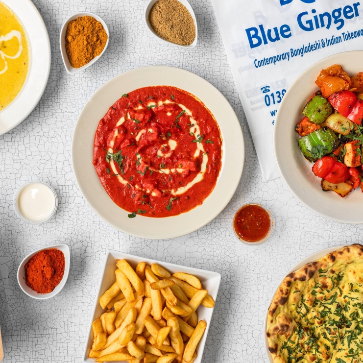 Blue Ginger is a contemporary Bangladeshi and Indian takeaway bringing vibrant flavours to Kingswinford. Located at 60A Moss Grove, we serve delicious chicken, lamb, prawn and vegetarian dishes including biryani, korma, kebabs, naans and classic sides like chana, aloo and dal. With fresh ingredients and authentic recipes, Blue Ginger offers a truly satisfying taste of South Asia — ready to enjoy at home.